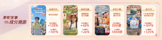 围绕三大趋势,抖音商城还相配打造五大热门话题矩阵,和解百大头部达东谈主发起全民“洗事”挑战,酿成趋势本体的二次传播。活动本事,@我是你的CC啊 等百万粉作家领衔创作,鼓励视频不雅看增量达2.5亿次,活动合座搜索PV爆发80%。